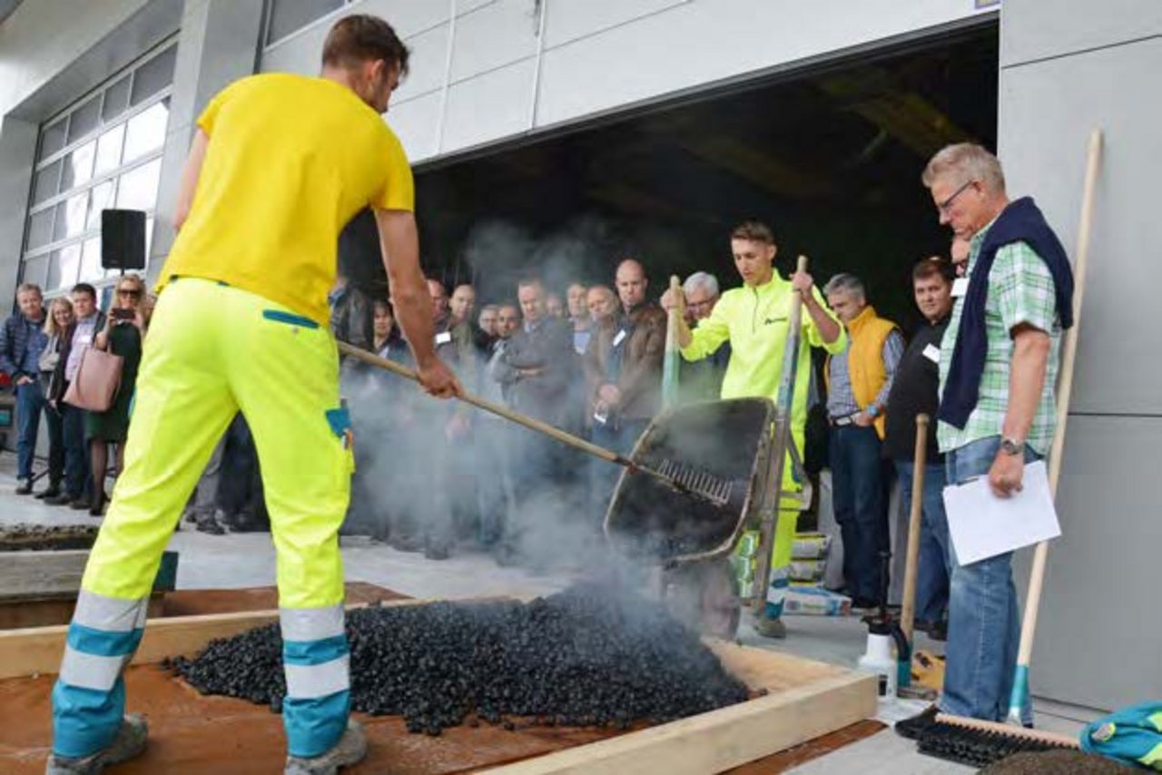Danach, zurück im grossen Saal, ging es um lärmarme Oberflächen beim Gussasphalt. Kurt Schellenberg vom IFM in Rottweil und Hans-Peter Beyeler vom Bundesamt für Strassen ASTRA teilten sich den Vortrag. Das machte durchaus Sinn, denn sie arbeiten seit 2012 gemeinsam am Pilotprojekt «Viadukt Kerzers», auf welchem sechs Teilstücke mit verschiedenen Oberflächenabstreuungen auf deren Einfluss betreffend Lärmreduktion getestet wurden. Die Aeschlimann AG ist bei dieser Forschungsarbeit ein weiterer wichtiger Partner, der bereits auf verschiedenen Objekten lärmmindernden Gussasphalt eingebaut hat.