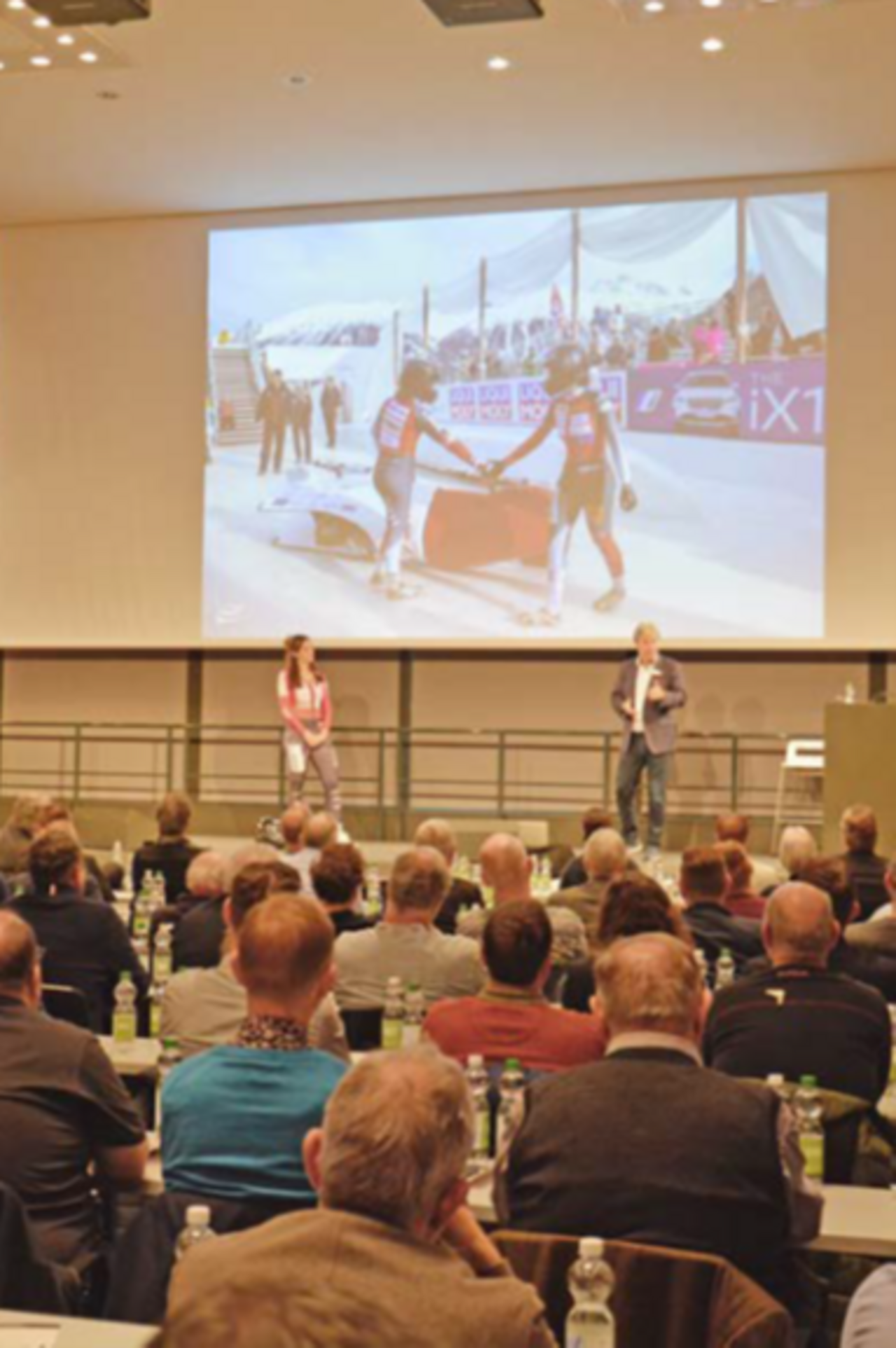 Während Christian Bischof einen weiteren Zaubertrick mit einem Seil vorführte, machten sich die Bobfahrerin Selina Isler und die Sportreporterlegende Berni Schär für ihren Auftritt parat. Die junge Topathletin begeisterte mit ihrer erfrischenden Art das Publikum von Anfang an. Sie sei vor der Wahl gestanden, wie sie sagt: Kugelstosserin oder Bobfahrerin. Sie entschied sich für den Bobsport und konnte schon sehr bald grosse Erfolge feiern. Beeindruckend waren ihre Ausführungen über das Lenken des Bobs und die Teamarbeit. Mit 114 Stundenkilometer donnert sie allein oder im Zweierbob den Eiskanal runter, «da braucht es viel Vertrauen in meine Fahrkünste und in das Material», erklärt sie weiter. Durch die geschickten Fragen von Berni Schär, plauderte Selina über den Alltag einer Bobfahrerin, die Sponsorensuche sowie die Anstösserinnen und verriet, dass zwei einfache Seile zum Steuern genügen.