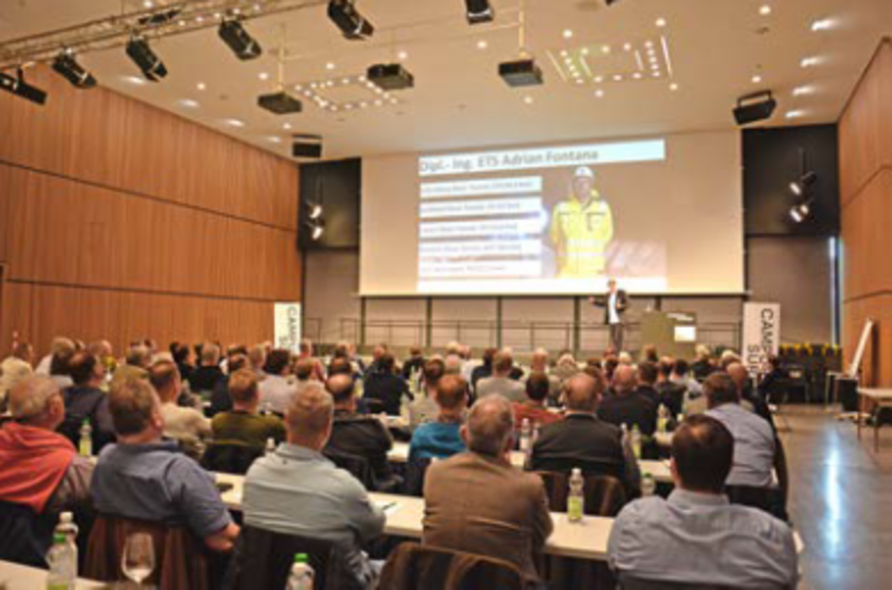 Mit einem ausgeprägten «Fribourgerdialekt» brachte der nächste Referent, Adrian Fontana, die Zuhörer zeitweise fast etwas in Nöten. Der charismatische Redner, der einmal Fussball-, dann Basketballprofi werden wollte, berichtete über die Alpentransversalen in der Schweiz und Nachbarländer und konnte versichern, dass sich die Schweiz mit dem Tunnelbau im Ausland einen Namen gemacht hat. «Swissness, das zieht!», betonte er. Am Schluss zeigte er noch ein paar Filmsequenzen, in welchen die Gefährlichkeit des Tunnelbaus dokumentiert wurde: «Ein Hoch auf die Mineure, die sich diesen Gefahren aussetzen und bei 35° unglaubliche Arbeit verrichten!»