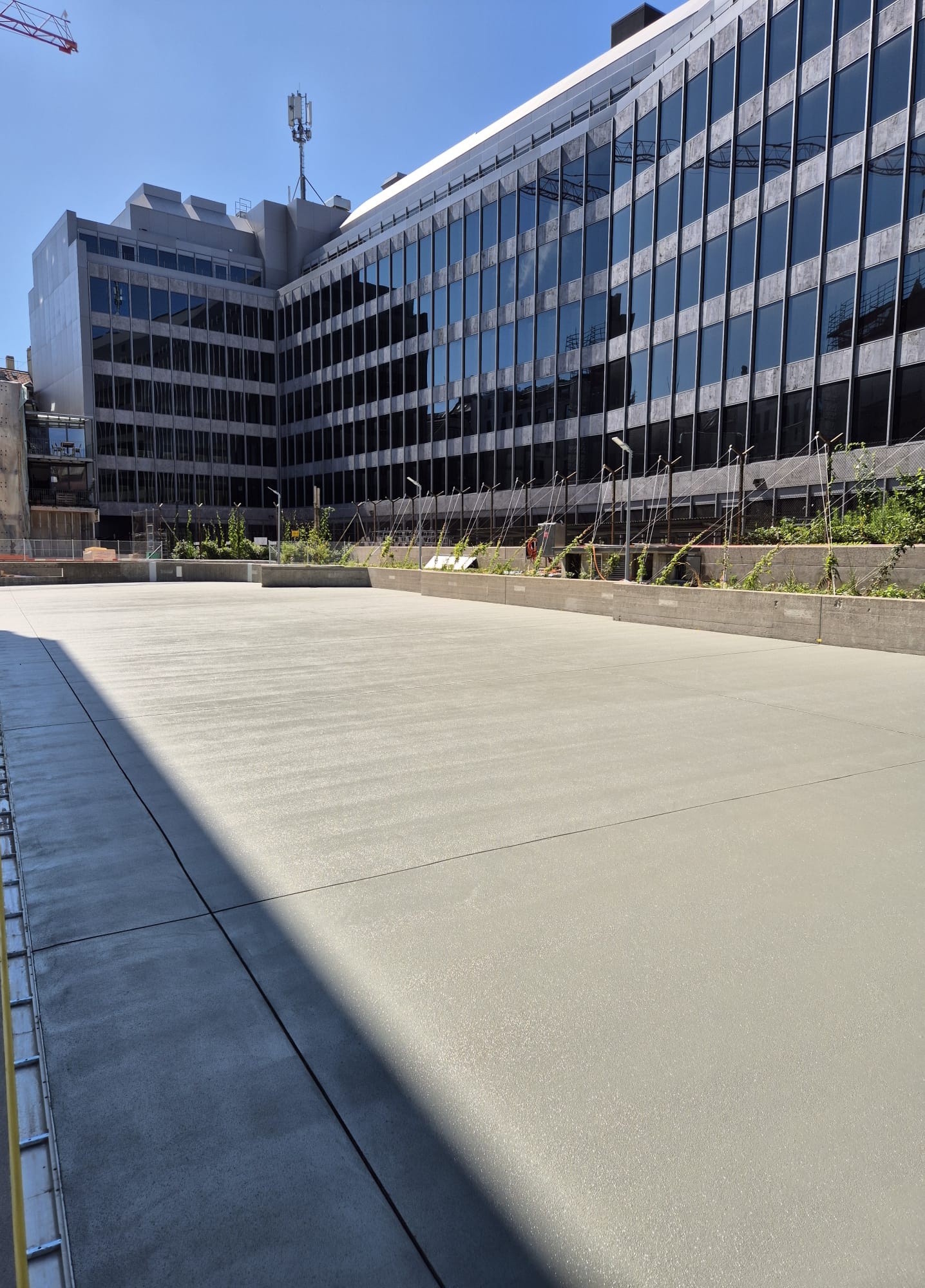 | Ausgeführte Arbeiten 1'500m2 Parkdeckbeschichtung mit System OS 8-light PMMA, PU Fugen, Sockelausbildung |
