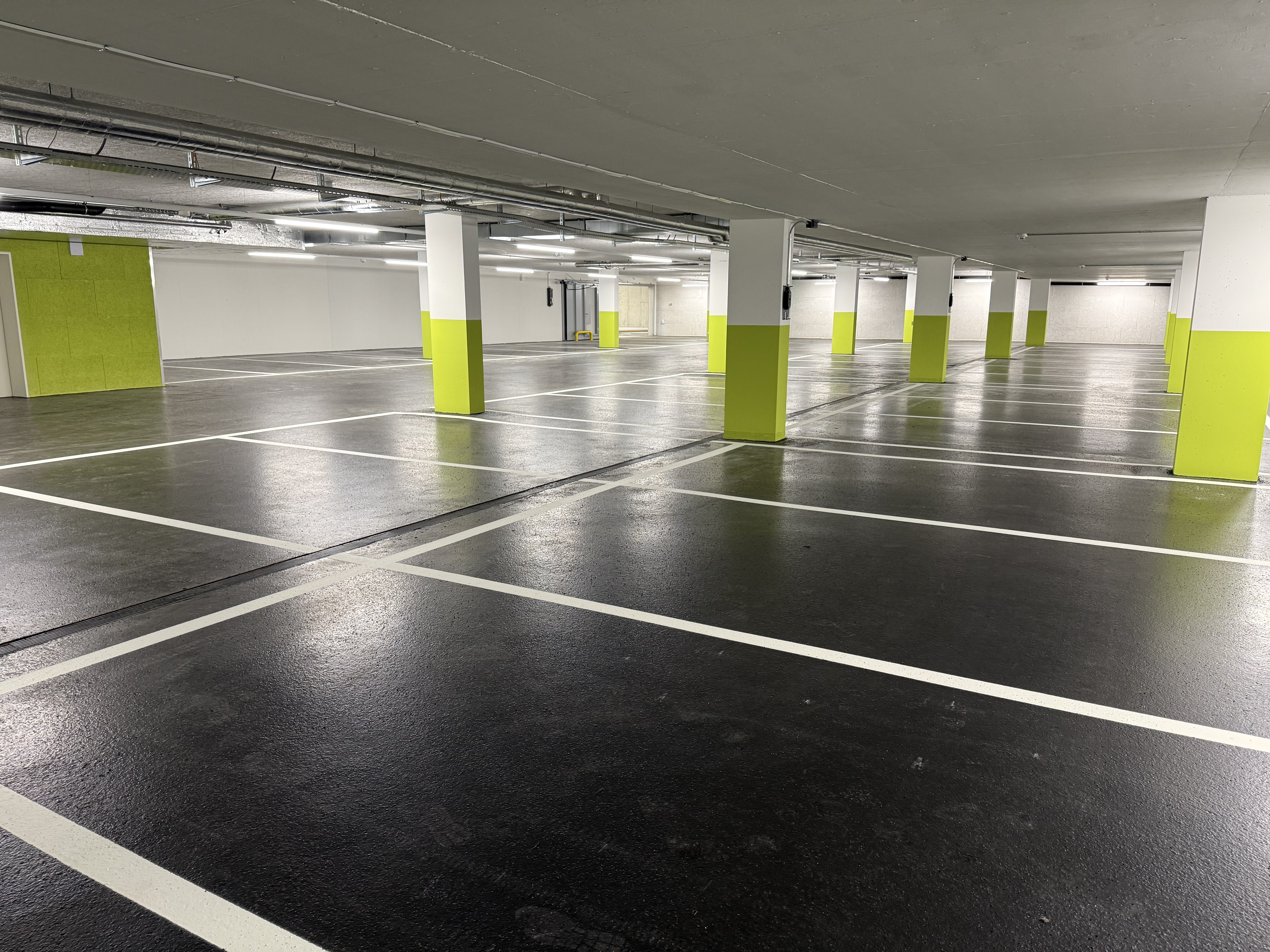 | Ausgeführte Arbeiten ~1170 m2 Einbau der MA-Deckschicht von Hand, PBD-Randverklebung, Absplittung, Fugen, Wolfa-Rinnen |