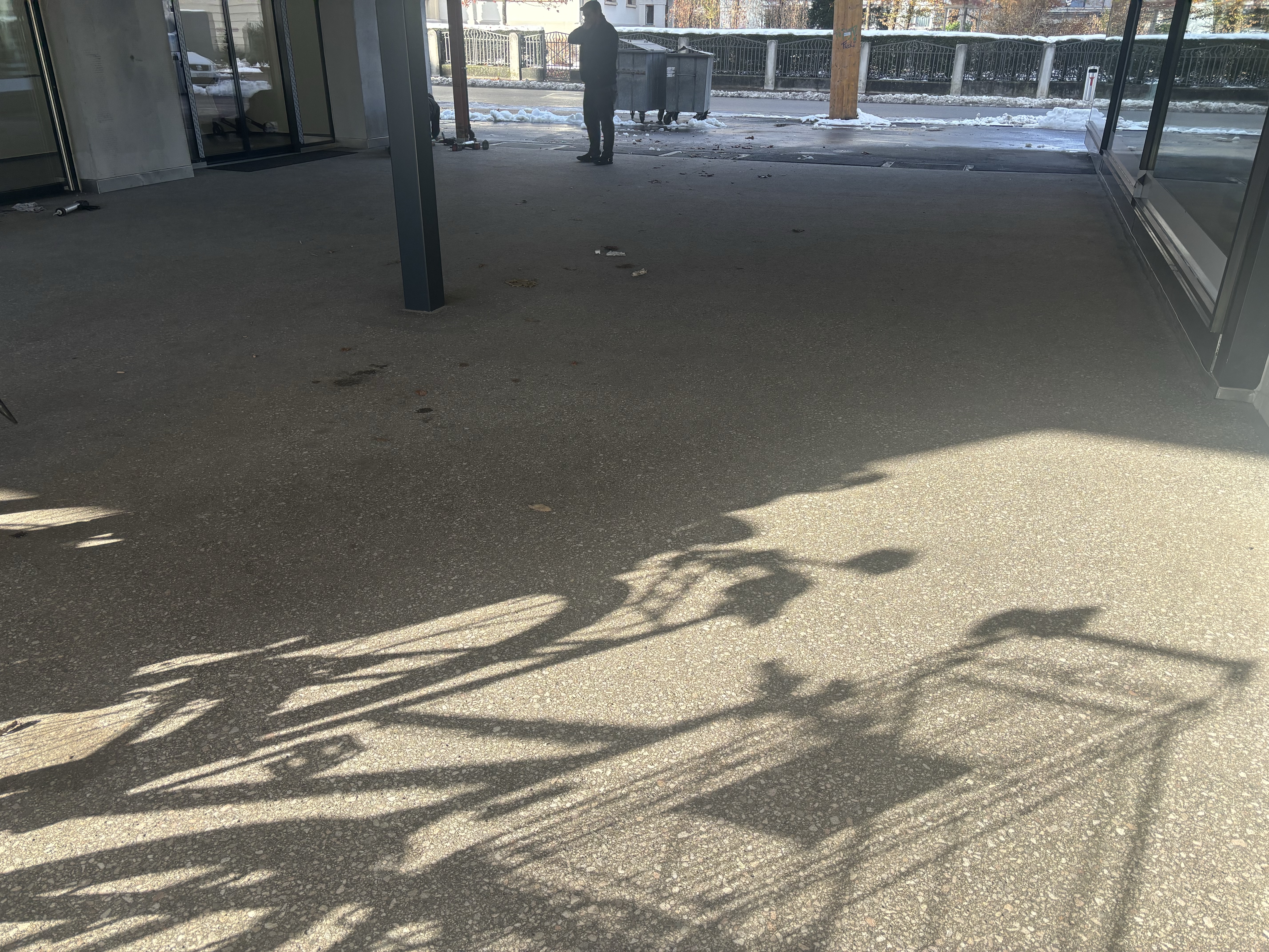 | Ausgeführte Arbeiten 120m2 PBD-Randverklebung, Einbau der Schutz- und Deckschicht (je 45mm) von Hand, Oberfläche geschliffen, Heissvergussfugen |