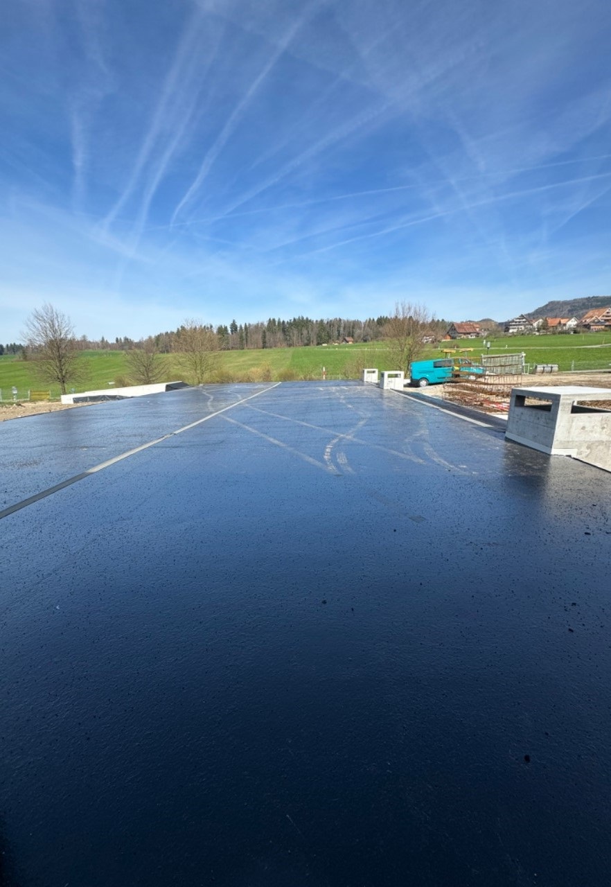 | Ausgeführte Arbeiten 720m2 Untergrundvorbereitung mittels Kugel- und Sandstrahlen, PBD-Abdichtung, Einbau der Schutzschicht von Hand (35mm), Heissvergussfugen |