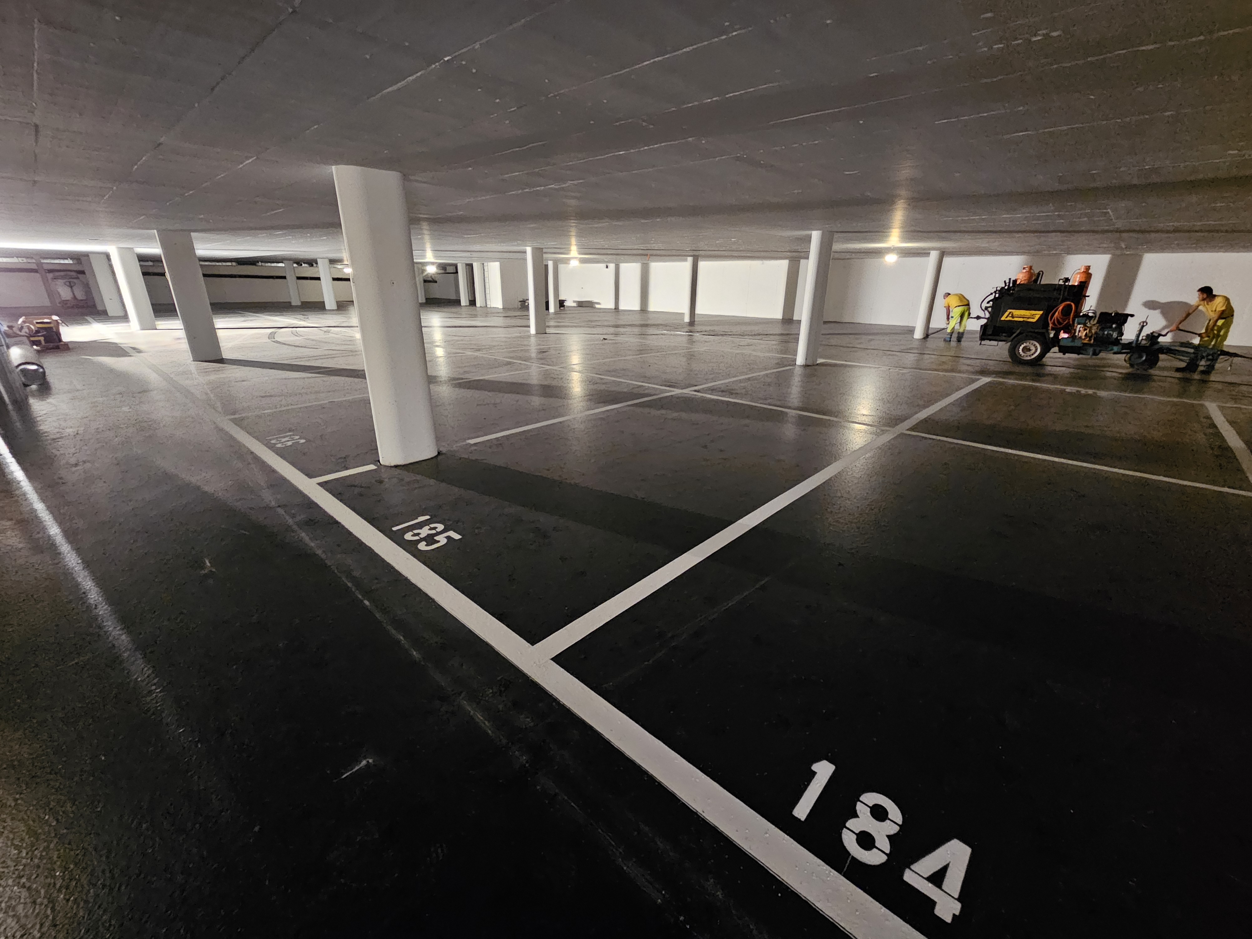 | Ausgeführte Arbeiten 7'886m2 Einbau der Deckschicht von Hand (30mm), leichte Oberflächenabsplittung mit bit. Splitt 2/4, Heissvergussfugen |