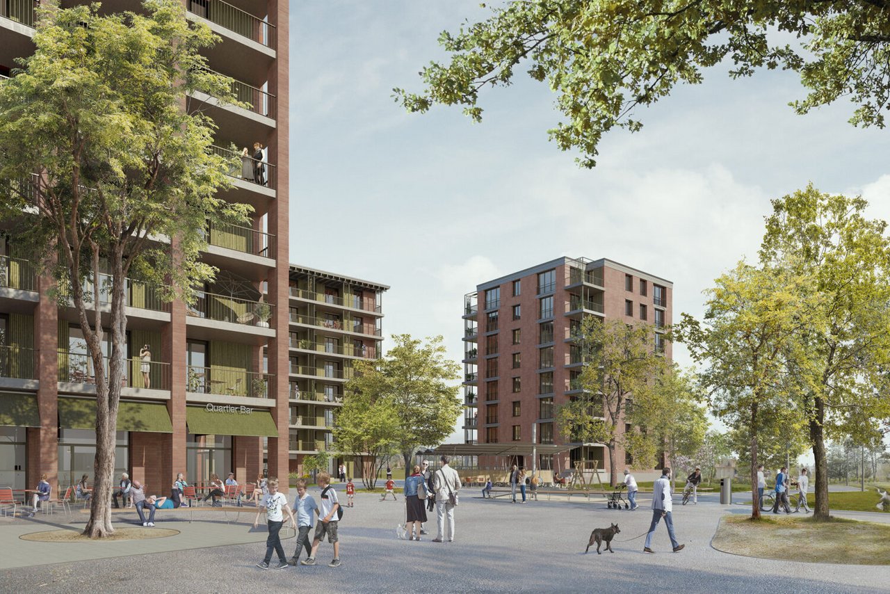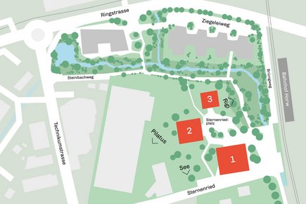 In der ersten Bauetappe wurden am Sternenriedplatz rund 100 Mietwohnungen in drei achtstöckigen Gebäuden erstellt. Jedes der drei Gebäude ist unterschiedlich gestaltet. Ziegelfassaden betonen die lebendige Architektur und verleihen der Überbauung eine warme, wohnliche Ausstrahlung.