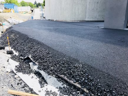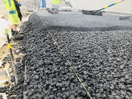 Glasporphalt wird anstelle einer konventionellen Wärmedämmung (Schaumglas, XPS, etc.) eingesetzt.